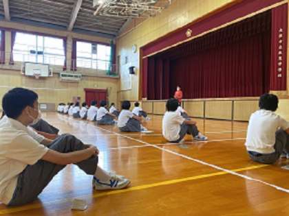 「今日の学年集会では、学校生活について話しました。先週に夏休みが終わり、学校が始まりました。今週からは本格的に授業が始まりました。まだ始まったばかりだからか、夏休みの雰囲気が抜けていない人や、生活リズムが戻っていない人が多いので、今週で慣れていきましょう。そして、実力テストの結果も低い人が多いと聞いているので、テストの振り返りをして、1学期に学習した内容をしっかりと思い出しておきましょう。」