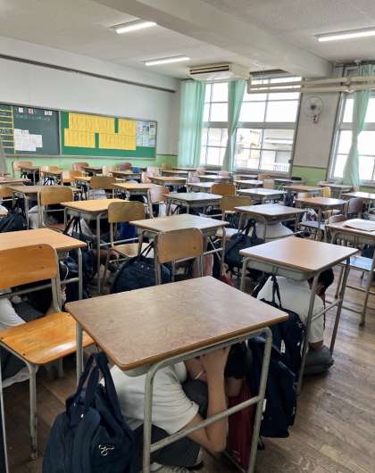 机の下に隠れたり、頭部を守りながらの移動など、いつ起きてもおかしくない現実に向けて真剣に取り組むことができました。