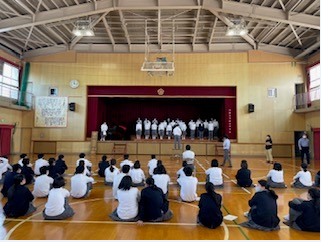 本日、4時間目に合唱コンクールの練習を行いました。整列の仕方や入退場の練習を行ったあと学年全体で課題曲「群青」を合唱しました。3年生最後の合唱コンクールなのでクラスが一致団結して金賞を目指してもらいたいです。