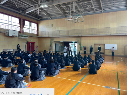 本日の6時間目に障がい者教育を行いました。講師の方が来られて視覚障害について教えてくださり、生徒たちはアイマスクをつけて学校内を歩く体験をしました。目が不自由な方の気持ちを理解することができるいい機会だったと思います。困ってる方がいたら積極的に自分から声をかけて助けることができる人になってほしいです。