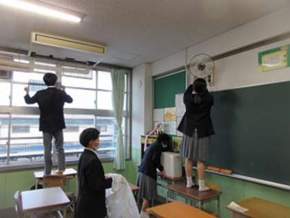 11月9日(水) クリーンキャンペーン 公開日 2022/11/10 更新日 2022/11/10 学校行事 本日はクリーンキャンペーンで、美化・保健委員が、クラスの扇風機とエアコンのフィルターの掃除を行ってくれました。 また、暖房の使用にあたって、加湿器の清掃も行いました。 限られた時間の中でてきぱきと動き、協力しながら活動していました。 みんなが気持ちよく授業を受けるために、いつもありがとうございます。 いいね(0)