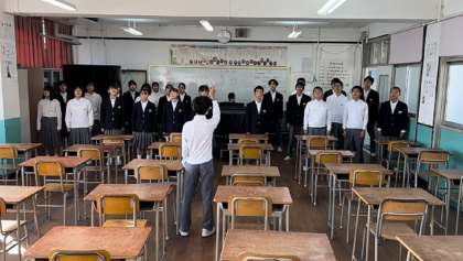 「今年の合唱コンクールでは、全クラスが大きな声を出して練習に励んでいました。合唱コンクールのリハーサルではどのクラスもあまりよい評価がもらえず、そこから全クラス大きな声を出して金賞を取ろうとクラスが一致団結して本番まで練習することができました。来年は中学校生活最後の合唱コンクールなので、悔いが残らないように楽しい合唱コンクールにしましょう。」 女子委員長