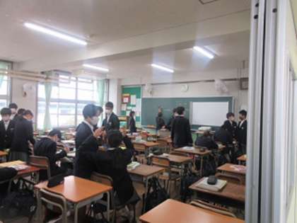 11月17日(木) 1年休み時間・授業2分前の様子 公開日 2022/11/18 更新日 2022/11/18 授業風景 此花中学校では授業の前の2分間を静かに過ごすという取り組みを行っています。 移動教室があっても素早く準備して移動し、次の授業に向けて心を整えます。 休み時間は友達と話し、授業は一所懸命に受けて、メリハリのある過ごし方ができています。 62期生、心をひとつに頑張っています。 いいね(0)