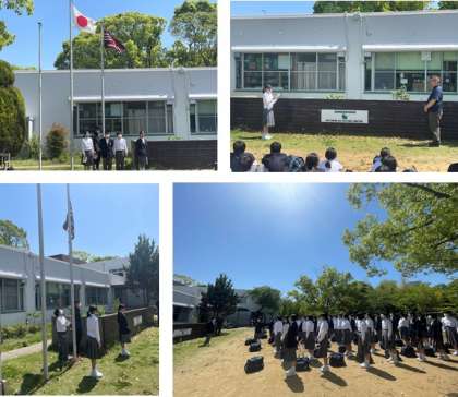 最後に、全員で声を張り上げて歌った校歌に合わせて、校旗降納を行い退館式を締めくくりました。