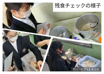先週から保健委員が給食の残食チェックを行っています。残食をみて、栄養バランスについて考えたり、残食を減らす取り組みについて考えてみましょう。