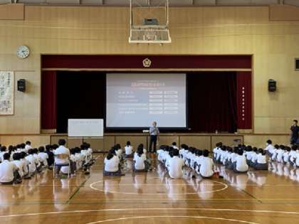 本日、2年生は体育館で薬物乱用防止教室を行いました。講師の先生をお招きしてDVDを見せていただいたり、講話をしていただいたりして、大麻などの薬物の恐ろしさを学びました。そして、実際に誘われた時を想定したロールプレイを行って、断る方法について考えました。正しい知識を身につけ、勇気をもって断り、薬物の危険からしっかり身を守ってもらいたいと思います。
