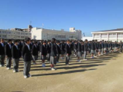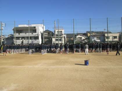 グラウンドにいる生徒全員がブレザーを着用していました。