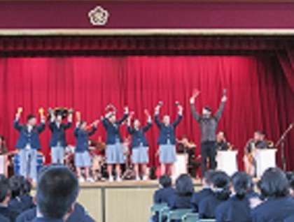 生徒が舞台に上がって演奏に参加する場面もありました。