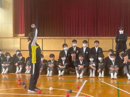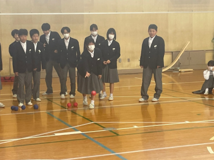 今日の6時間目に、1年生は障がい者教育の一環としてボッチャの体験を行いました。ボッチャとは、肢体不自由の方でもできるパラリンピックの正式種目です。クラス別で活動をしたあとクラス対抗で試合をして、とても楽しそうに取り組んでいました。少しでも障がい者を理解するきっかけになればと思います。