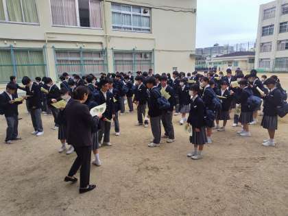 小雨がぱらつき心配されましたが、新2年生、新3年生のクラス分けがグラウンドにて発表されました。ワクワクどきどきでしたね。きっと新しいお友達ができるといいですね。