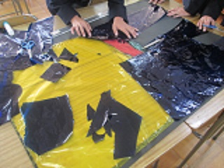 1枚1枚のセロハンを丁寧に貼り付け、