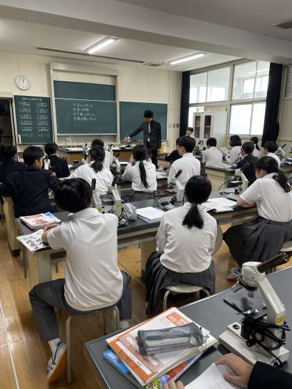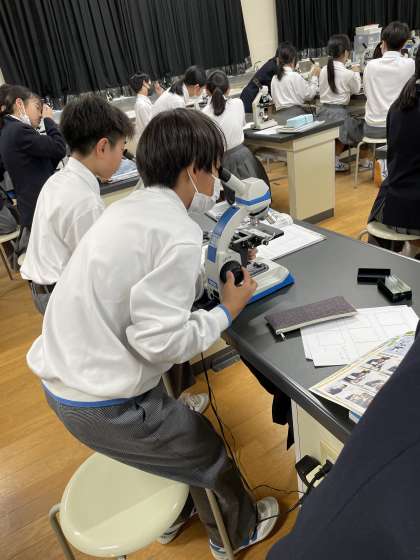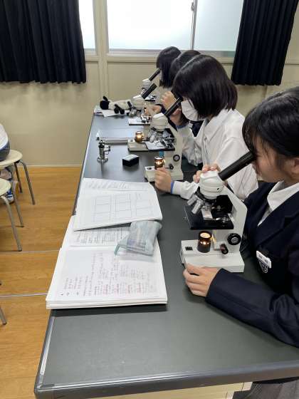 顕微鏡の使い方、特性、微生物を見るという実験を行った。