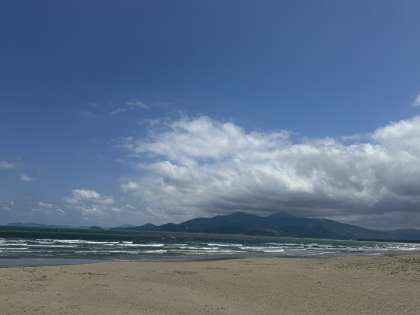 晴天に海の青さがまぶしいです。少し海風強そうですね