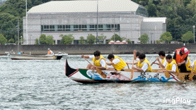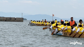 生徒たちは、クラスの名誉を掛けて競漕をしているものの、結果は二の次のように満面の笑みを浮かべて船を漕いでいました。