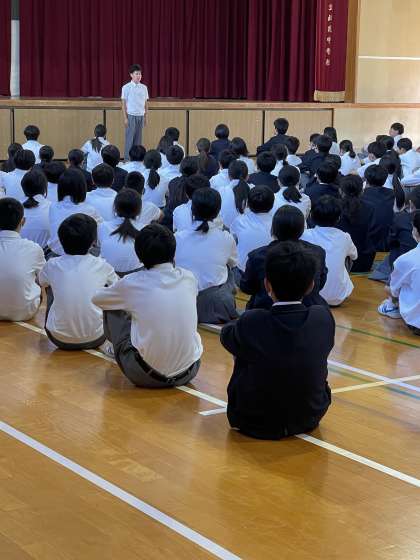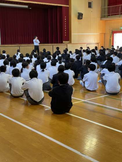 学校のアンケート調査で「自分のことが好きですか」の調査結果を踏まえてバドミントンの桃田選手の引退表明で「今の自分が好きです」と言ったことを捉えて講話を行いました。