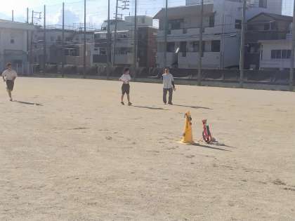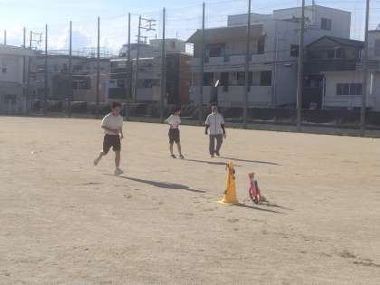 青空の元グランドで部員に寄り添いながら丁寧にご指導いただいてます。