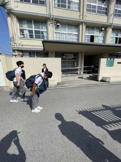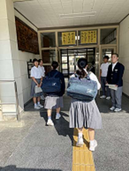 正門は生徒会委員、各学年が通る廊下では各学年の委員長がそれぞれ率先してあいさつを行い啓発していました。