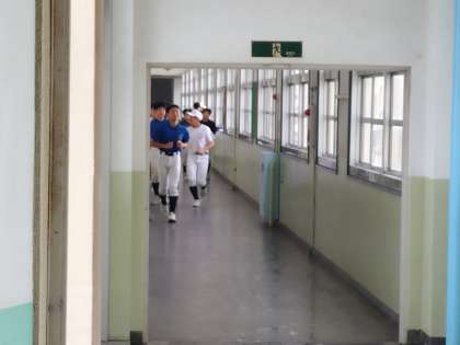 今日は雨の日の部活動として陸上部、野球部などが室内で練習しています