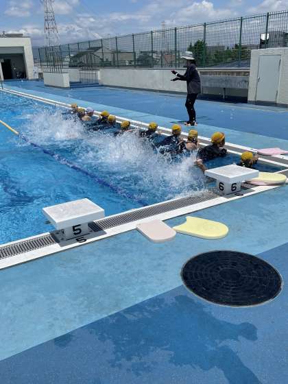 1年生 体育の授業(水泳) 公開日 2024/07/05 更新日 2024/07/05 授業風景 一昨日から水泳(プール開き)の授業が始まりました。 梅雨の晴れ間の本日は、陽射しが強く、水温も高く絶好のプールでの授業でした。 バタ足から始まり、息継ぎの練習、最後は25メートルをクロールで泳ぐ等 先生方が最新の注意を払う中、生徒たちは楽しく授業を受けていました。 いいね(0)