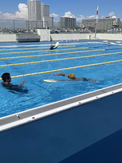 補習授業(水泳) 公開日 2024/07/23 更新日 2024/07/23 授業風景 昨日、大阪も梅雨明け宣言が出され本格的な夏がやってきました。 プールでは、1年生が水泳の補習授業を受けていました。 約20名の生徒が先生の指導を受け息継ぎの仕方やバタ足の練習をしていました。 生徒たちは、積極的に補習を受けるなど意欲的にそして、楽しみながら取り組んでいました。 少し、羨ましい気持ちになりました。 いいね(0)