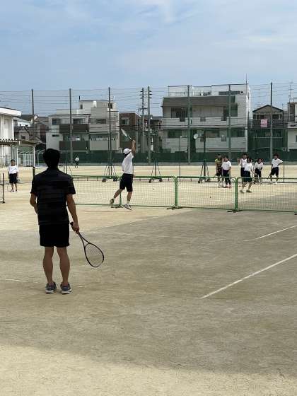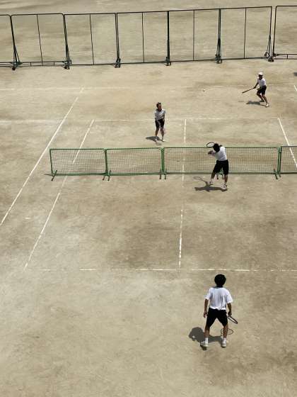 クラブ紹介(ソフトテニス部) 公開日 2024/07/26 更新日 2024/07/25 部活動 クラブの在籍人数が1年生12人、2年生13人、3年生8人と一番大所帯なのがソフトテニス部です。 多人数であることから、夏休み中の練習は2グループに分けて午前・午後とテニスコートを効率的に使用しています。 7月27日〜8月4日の間、秋季総体やブロック大会(3年生大会)が控えており目下猛練習中です。 3年生はこれらの大会後に引退することになっているので、ひとしお練習に身が入っているようです。 いいね(0)