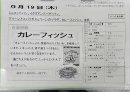 カレーフィッシュ ミニコッペパン 牛乳 です