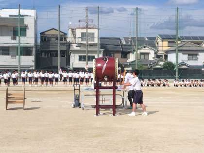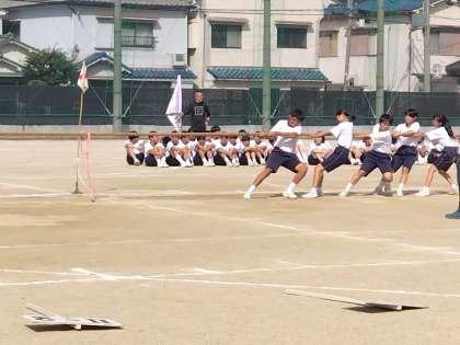 2年生学年練習(体育大会) 公開日 2024/09/24 更新日 2024/09/24 授業風景 朝夕の涼しさが心地よくなってまいりました。そんな中いよいよせまる体育大会の追い込み練習が続いております。 今日は2年生の学年種目である「綱引き」の練習が行われました。 勇壮な太鼓の合図に合わせた一糸乱れぬ集団行動、実際に綱引きも予行演習しました。 もう少しで本番です。頑張りましょう。 いいね(0)