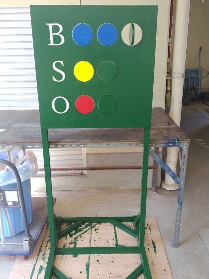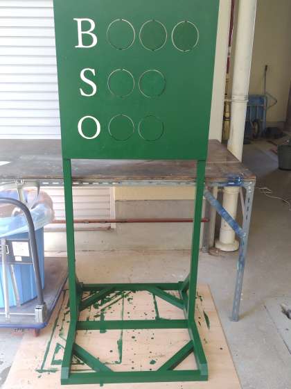 表示板のくりぬきや雨にぬれても色落ちしないようにペイントを工夫したりと、管理作業員さんの技術を駆使して、頑丈で、できるだけ軽く、遠くからもはっきり視認できるようにを目標に丁寧に作成いただきました。大変