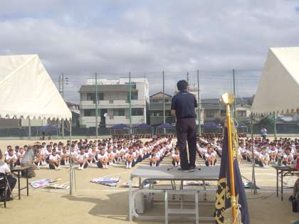 教頭先生の開会宣言のあと、校長先生、PTA会長様のあいさつ、国旗・校旗の掲揚を行いました。