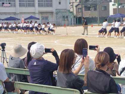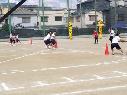 部活動クラブ対抗に続き、1年生による学年種目「台風の目」、2年生学年種目「綱引き」がおこなわれました。みんな一生懸命に頑張りました。