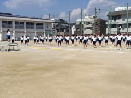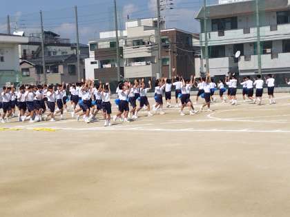 体育大会は終わったのですが 公開日 2024/10/01 更新日 2024/10/01 授業風景 先日開かれました体育大会は無事成功裏に終わりました。最後の大会を迎える3年生には格別の思いだったと思います。当日体調不良で3年生の学年演技ができない子たちもきっと残念だったでしょう。そこで、演技の完成形を大会と同じく再現しようと、生徒たちの発案もあり、今日の3時限目に学年演技を再現しました。観客はいませんでしたが、きっとみんなで完成させた学年演技を気持ちよく踊ることが出来たことでしょう。 いいね(0)