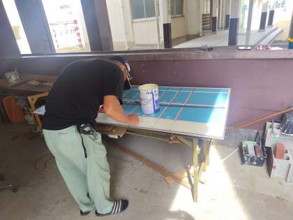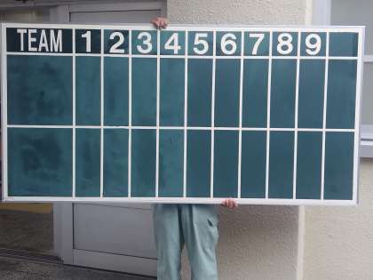 かねてから野球部のスコアボードの痛みがひどく、管理作業員さんの巧みな技術で完全手作りの新しいスコアボードが完成しました。