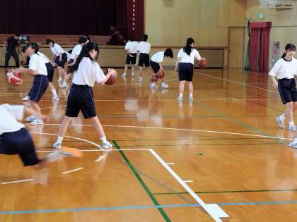 秋空のもと体育授業(2年2組・3組合同) 公開日 2024/10/17 更新日 2024/10/17 授業風景 よく晴れた秋空のもと、2年2組・3組合同の体育の授業がありました。男子はハンドボール競技、女子はバスケットボール競技と別々に授業を受けました。女子のドリブル練習、ボールが手につかずボールを追う姿がほほえましいですね。シッカリ練習し、試合までできるようになりましょう。 いいね(0)