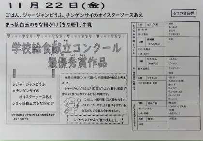 ※ちなみにこの献立は学校給食献立コンクール最優秀賞作品だそうです。