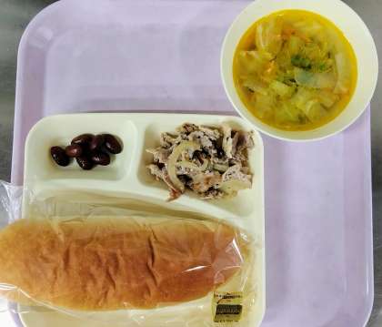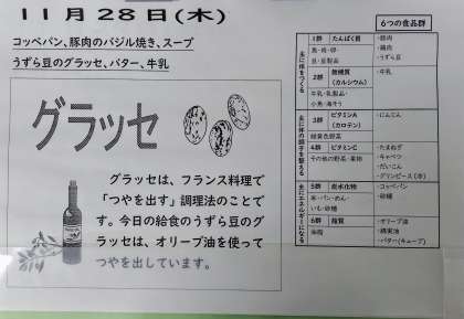 うずら豆はいんげん豆の一種で、皮の表面の模様がうずらの卵に似ていることからこのように呼ばれます。今日の給食のうずら豆のグラッセも、よく見ると、独特の斑紋模様が確認できました。
