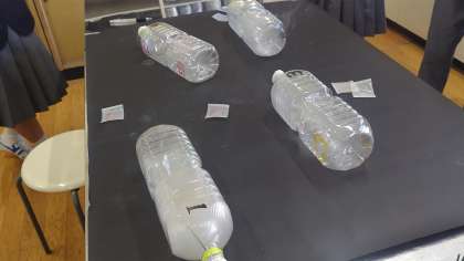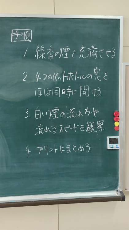 本日、家庭科授業として調理室にて換気実験を行いました。