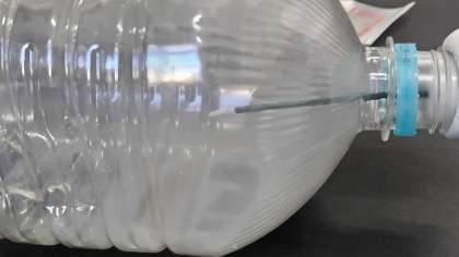 今回は煙の発生源としてペットボトルにお線香をキャップに刺し、かねてよりボトルに煙の出口として大き目の切り口を作っておき、テープで塞いだなかでお線香の煙を充満させ、合図とともに一斉にテープをはがして煙を部屋に充満させ煙の流れを観察してみました。