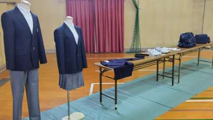 また、標準服・体操服・カバンなどの見本の展示と各種用品の購入の詳細や今後の入学までの日程、入学式当日の流れ、入学後の始業式、在校生徒との対面式の詳細などについての説明もありました。