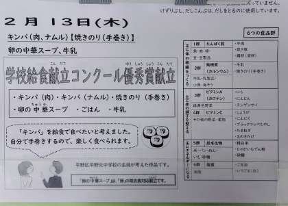 なかなか暖かくならず春が待ち遠しいほどの厳しい寒さが続きます。おなかが空いたら寒さを一段と感じます。元気いっぱい給食をいただきましょう。