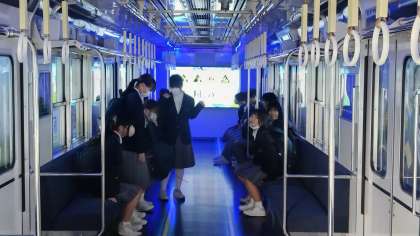 2年生の校外学習は28日1日を使いクラスを15班に分け、半分の班をe METRO社(旧大阪市交通局)が森之宮に展示している Mobility town コースからスタートし、もう半分の班は大阪城コースからスタートとして実施しました。