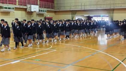 1・2年生の拍手の中、3年生が入場し、対面でのあいさつの後お互いに送辞・答辞を交換しました。