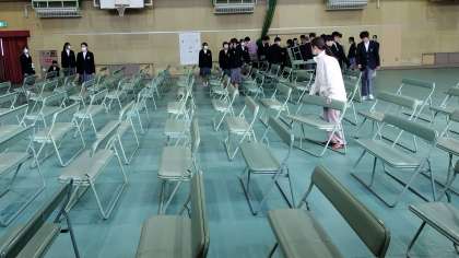 先週の金曜日の放課後に、来る14日(金)開催予定の「卒業式」の会場準備として2年生の皆さんとともに体育館の清掃と会場設営を行いました。
