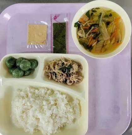 豚肉と野菜の炒め物 五目汁 よもぎだんご(きな粉付き)