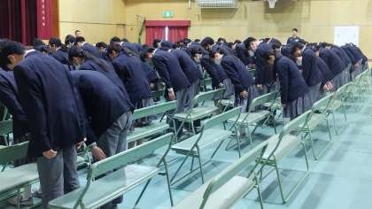 卒業式の予行演習 公開日 2025/03/10 更新日 2025/03/10 学校行事 今日の5限に3年生全員による卒業式の予行演習がありました。今日も含め2日間行います。予行演習とはいえ自分のなすべき動きを確認するため生徒たちは緊張した面持ちで先生の指示に従っていました。3年間の中学校生活を思い浮かべつつ式当日は規律正しく厳粛な卒業式にしようとする気持ちがひしひしと感じとれる予行演習でした。 いいね(0)