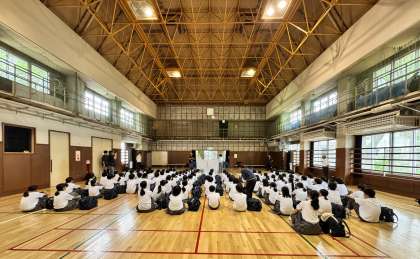 入所式、オリエンテーションが終わり、各部屋での準備をしました。今からガイダンスが始まります。