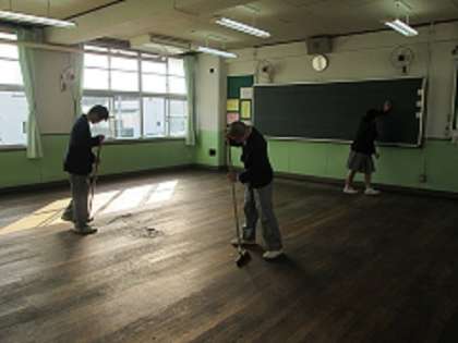 3月4日(金) 感謝の気持ちを込めて 公開日 2016/03/04 更新日 2016/03/04 学校行事 本日、今年度最後の塗油がありました。 美化委員が中心となり、教室にあるものを全て廊下に出し、 入念に掃除をした後、油をひきます。 1年間過ごした自分たちの教室を、 次の学年に気持ち良く引き渡すために、 丁寧に行っていました。 教室は琥珀色に輝いています。 いいね(0)