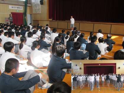 修学旅行実行委員長から修学旅行のスローガンが発表されました。
