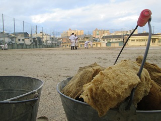 6月13日(月) 雨上がりのグラウンド 公開日 2016/06/13 更新日 2016/06/13 部活動 本日の野球部の様子です。 午前中は雨が降っていてグラウンド状況がよくありませんでした。 しかし、午後は雨が上がったためグラウンドで練習ができます。 「自分たちで練習する場を作る」 野球部はスポンジを手に取り、グラウンドの水を吸い取ってから練習を開始しました。 もちろん、練習が終わった後の整備も欠かせません。 グラウンドを大切にする野球部…さすがです! いいね(0)