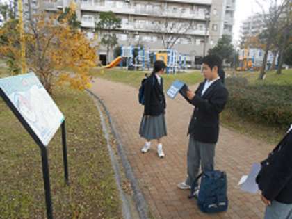 班の仲間と地図を囲んだり、チェックポイントで写真をとったりと