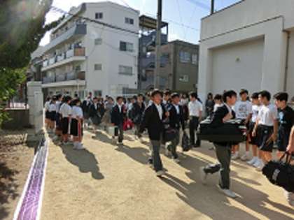 この後、体育館にて帰校式が行われます。